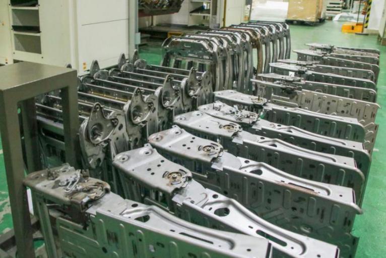 7.夹具设计精准、先进:在夹具不同部位设置有吹气结构,以保障焊点位置全覆盖;夹具通过快速定位位销进行定位,拆装方便;夹具设计均考虑防错、防呆和防漏功能,均安装吊环螺钉,夹具可以通过行吊进行更换;关键区域会增加防飞溅装置;夹具设计所有焊接零件得到有效的压紧,保证焊接接头间隙小于0.2mm,压紧时不破坏零件定位位置和几何形状以及表面质量。(每个压块的压紧力不超过80N);夹具会给客户提供完整的三坐标尺寸精度报告,夹具装配后定位元素精度小于0.08mm;设有粗定位和粗导向,方便快速精准的装件。